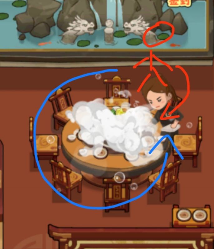 这个服务员有什么大病吗,本来站在我画的位置,按照我红色轨迹就能去打扫了,可是他非要走蓝色绕一大圈去打扫,我????😅😅😅