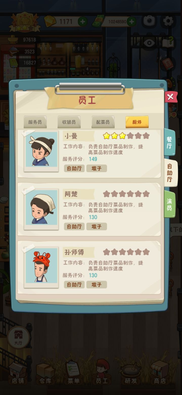 三楼收银员有bug,收银速度和零级没有区别,我升到了四星,收银速度提高60%,可还是需要5秒左右