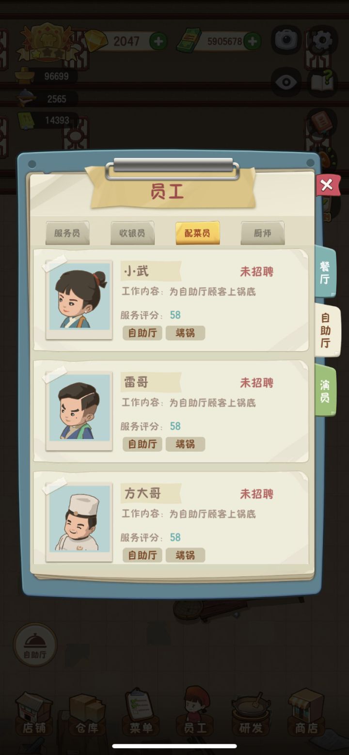 前几天肝出来的自助厅,今天一更新,居然没了,升级了的40个菜品也全没了!小饼干也没了!招聘的自助厅员工也没了!什么鬼!想退游了