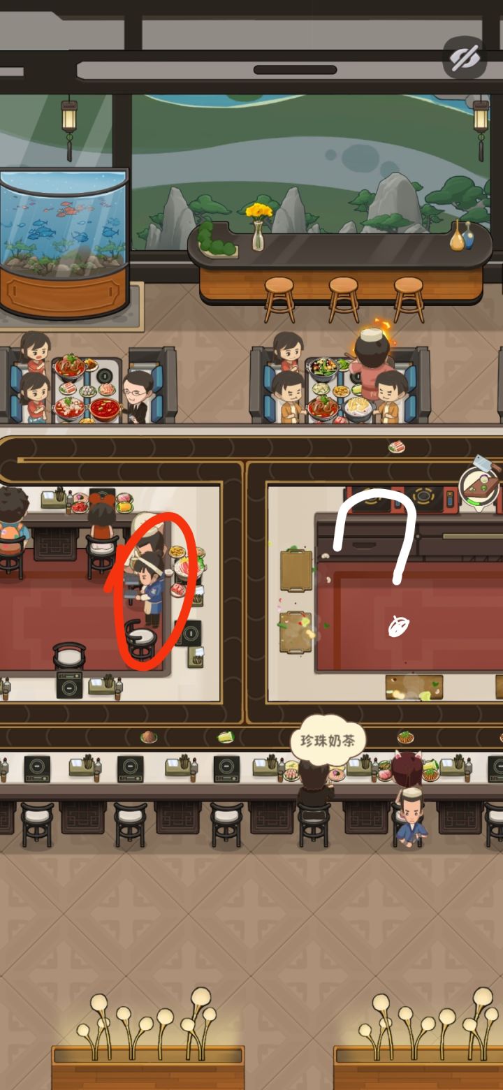 🆘这怎么回事?是bug吗?难道只有我这样吗??位置不对呀😂!!!为什么不在配菜区切菜啊,都跑到卡座还有单人座去了,看着好难受啊😰😰😰