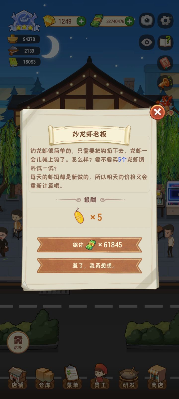 最近的钓龙虾活动让人真无语,刚开始两天小鱼干起码能十中一,现在更新后每天都会买125~145抽,但每次只中了两抽。然后店员升级技能书也是获得经验少得可怜,我现在一个礼拜都卡在银三了,我感觉我自己的耐性现在越来越少了,就看看哪天受不了就直接退游了。
