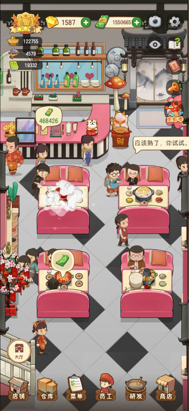 菜品锅底全有了,自助厅也正常营业了,现在就是每天上线领个奖励、做个游戏机,无聊了😑