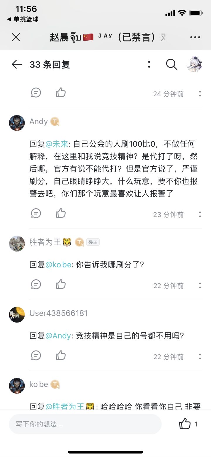 胜者为王自己违规参赛到处给人泼脏水,引导舆论,你们会长胜者为王🐯到处给别人代打比赛,没晋级,恼羞成怒开始动员俱乐部泼脏水,本来不想把事闹大,最初也只是回应回应,但是有些人越给脸越跳,我想问问不明情况的吃瓜群众,你们没证据的情况下,说SD俱乐部刷分,并且表示不能接受,但是他代打是实锤的,你们为什么一句公证的话都不说,这就是人性,你们不是来分对错的,你们是来看利弊的,不管你对错,你晋级了你就是不对的,胜者为王🐯,你不是喜欢发一些看法吗?你对代打行为是什么看法?