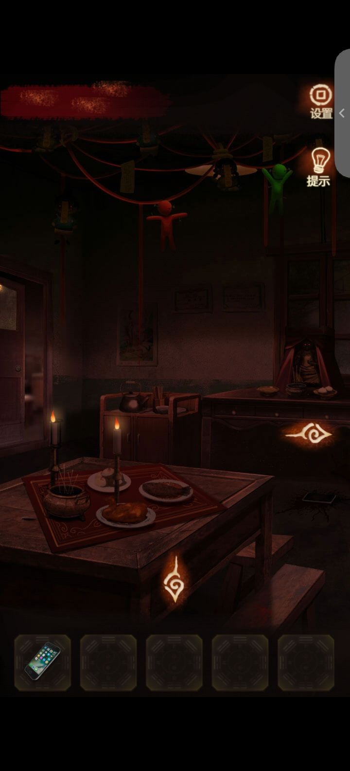 第二章16.拿走桌上的【面食】。16.117.打开柜子,拾取【糖果】和【人偶身体】,查看笔记本。17.118.查看桌上的神像,将【面食】放在左侧的盘子上,拾取【钥匙】、【木锤】和【包子】。18.119.用手机查看楼梯前的小鬼,得到提示【食糖鼓鸟】。19.120.把【糖果】和【包子】给对应的小鬼,获得【人偶】。20.121.返回客厅,用【钥匙】打开左侧的门,进入杂物间。21.122.查
