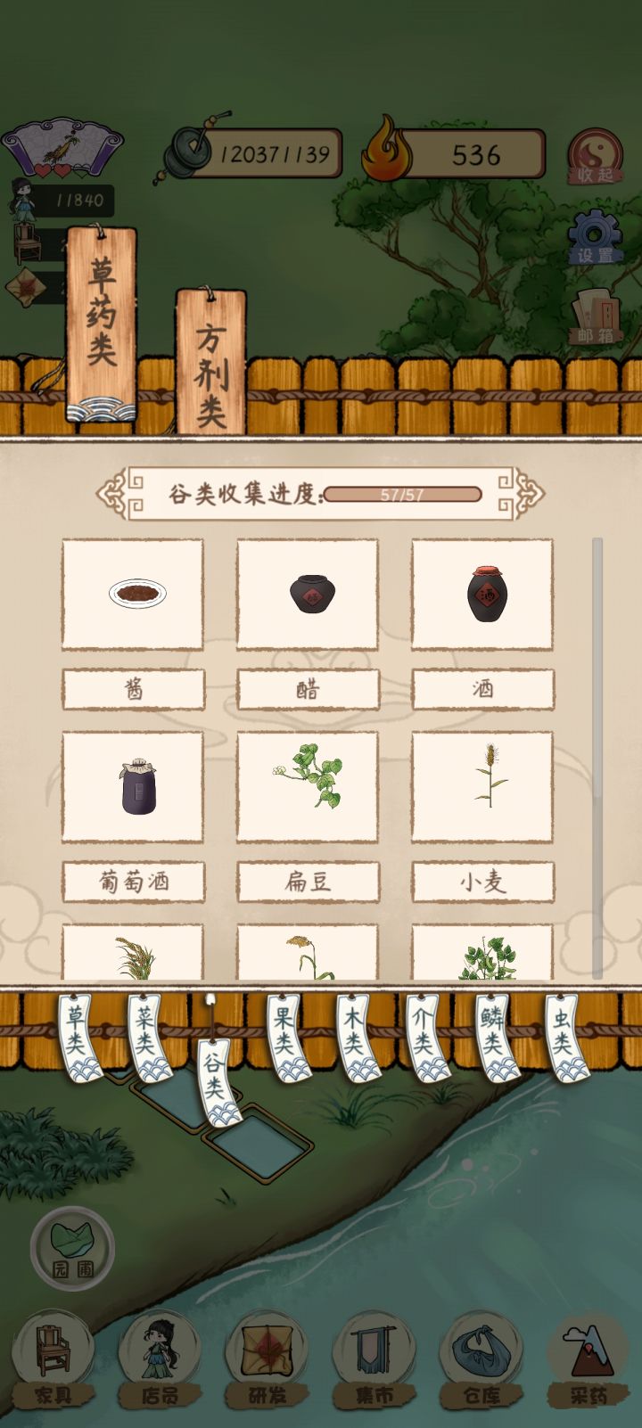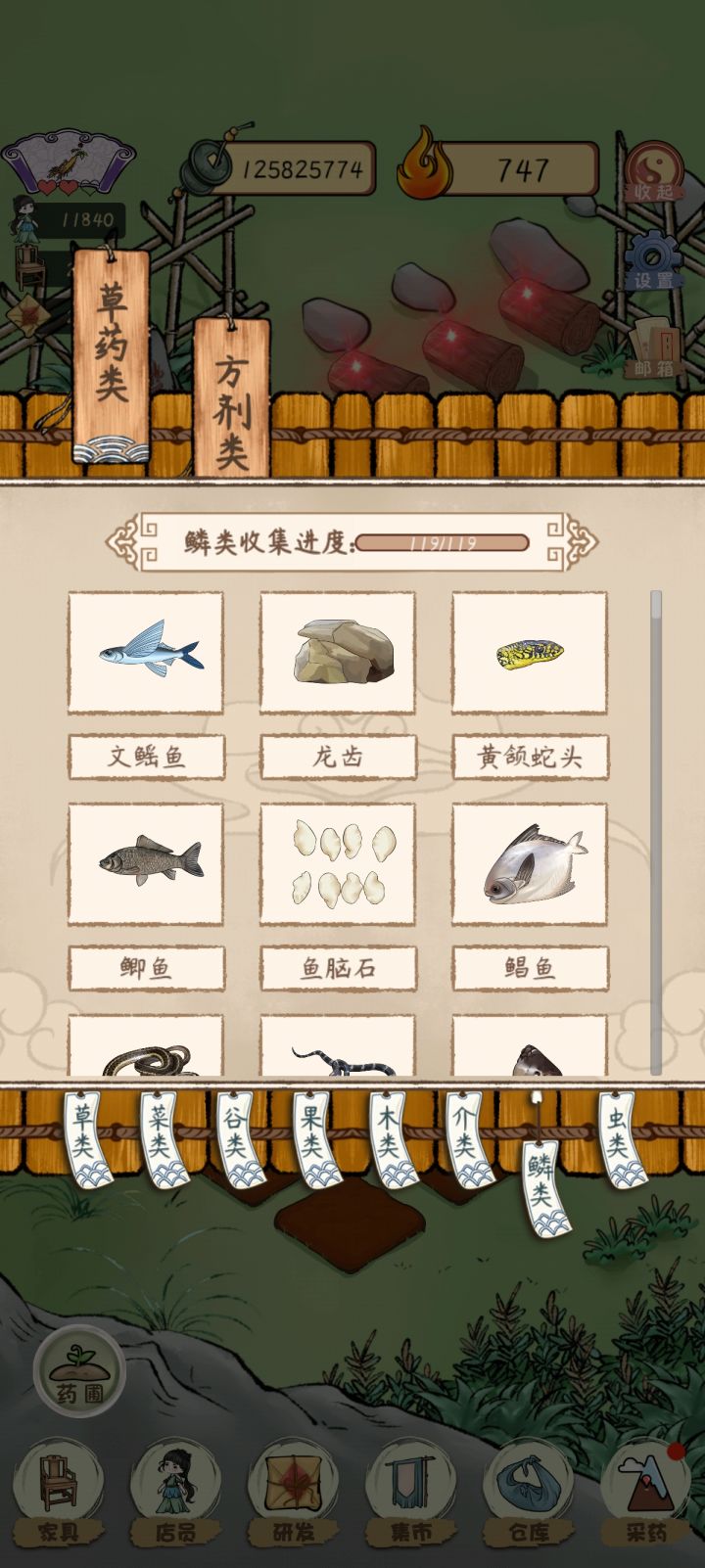 250825集齐五类250111集齐四类240801集齐三类240421目前就收集齐这两类图鉴木类翻牌(可以全部翻到)介类钓鱼(大部分可以钓到,少数几种看广)草、菜、谷、果类(采药+商店)鳞类(看广)虫类(大部分可以捉到)蜂箱没用,效率低,得了蜂蜜就收手,不然总得玩小游戏。采药不分场景,每个场景随机出品类,不固定