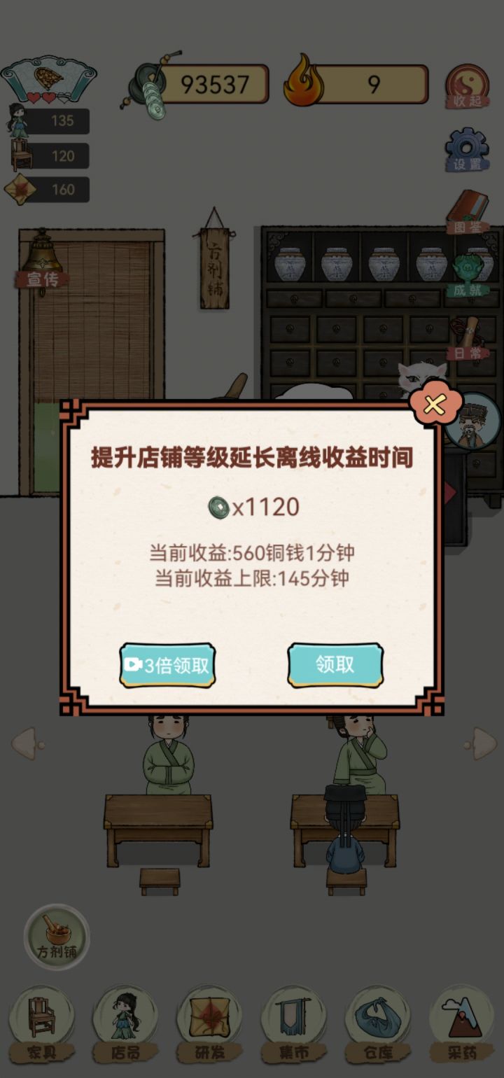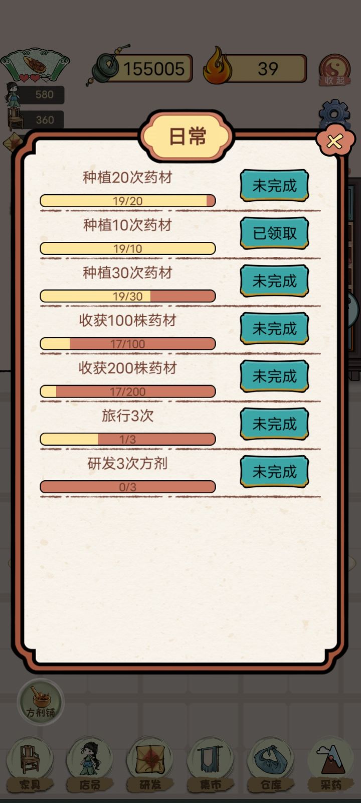 甘草干姜汤,甘草种子500,种10min,干姜成品300(自动购买),收入683,亏损117😅有事吗?