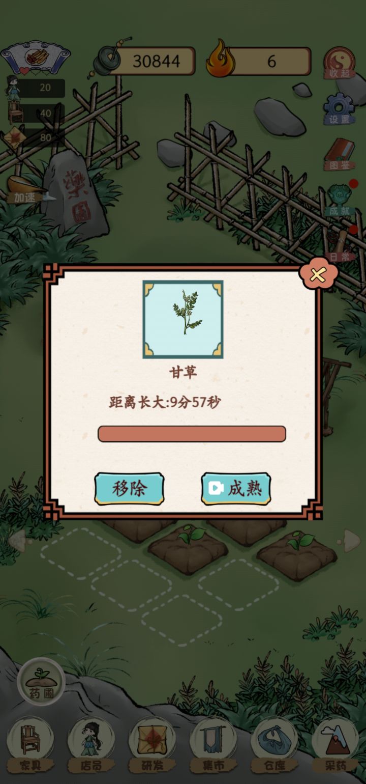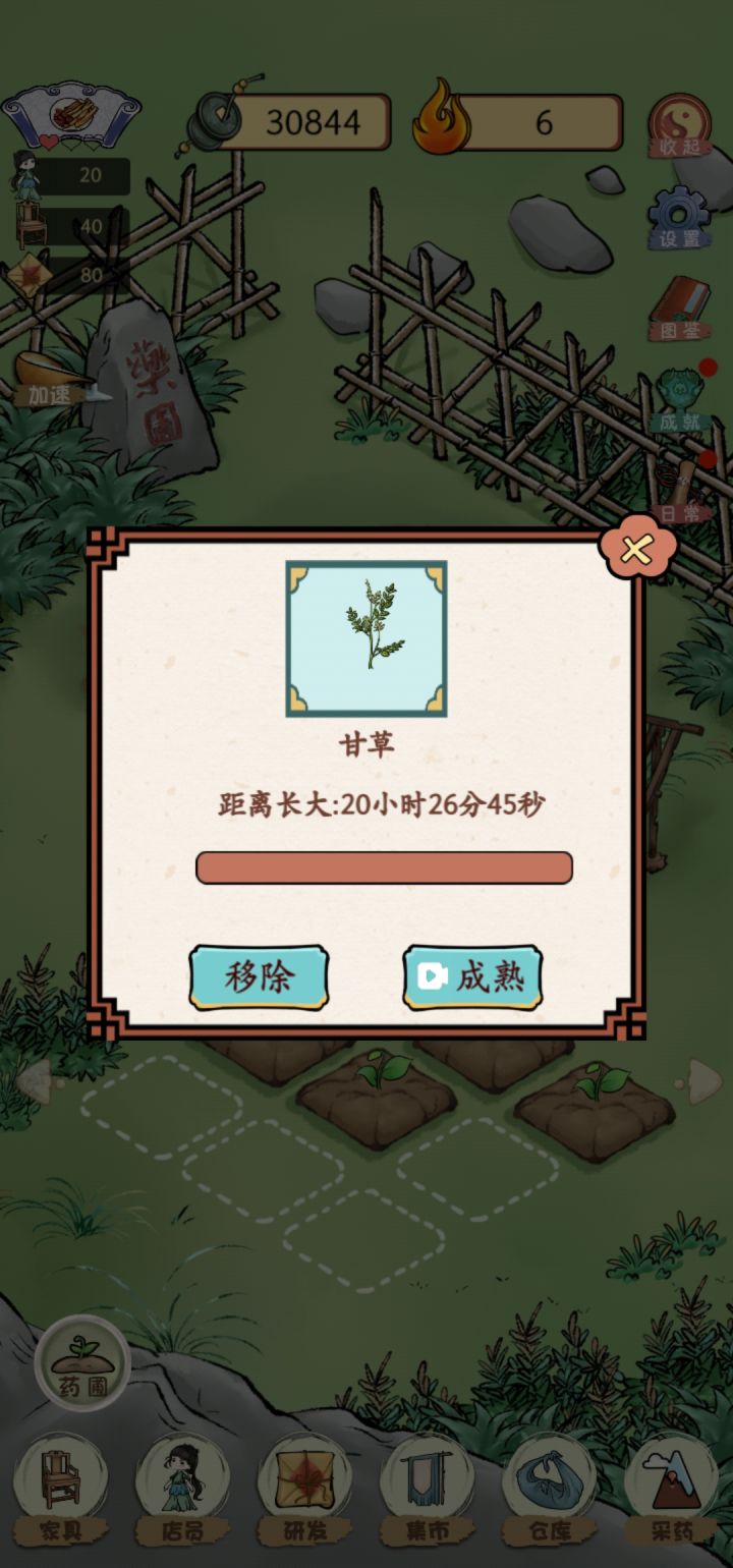 最基础的草药种植时间就很长,如果要加速,只能看广告,也没有商店直接购买草药,日常板块一直在跳,不能点,只能说广告劝退我了
