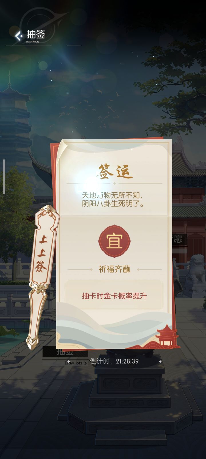 #奇点时代 #奇点时代攻略 起因是我写小技巧发现原本以为可以很快讲完的内容实际上还是要大幅超过字数上限,为了保证大家能看到重点决定拆成几期来发。这期讲讲寺庙的玩法寺庙是个好东西可惜被削过了。尽管如此抽签和上香这两个功能依然是日常当中不可或缺的存在。先说抽签。真正有意义的上中签可以分为三类,提升抽卡爆率(如图一)、提高地图彩蛋爆率和增加挂机奖励。其余上中签虽然也有但不会影响操作和决策,比如撸猫奖
