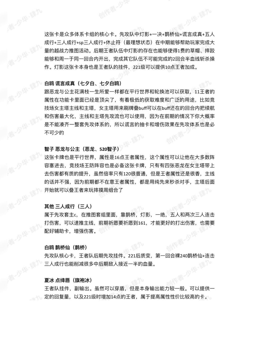 如图,这就是最完美的卡组下面来聊聊为什么会是最优解1、防御高,治疗还行,先攻难秒你2、卡组联动效果极好,大量1,2费,循环很快3、四张抽卡,卡组循环快4、打人少,对面能量永远没我们快,然后这次获取能量效率还翻倍了5、炽热感官放第一回合,不管是遇到什么情况,第一回合必抽花间或者白龙,总有卡打6、很容易一回合秒人,你可以理解为11保2的打法7、奶卡,盾卡多,王者内战也强