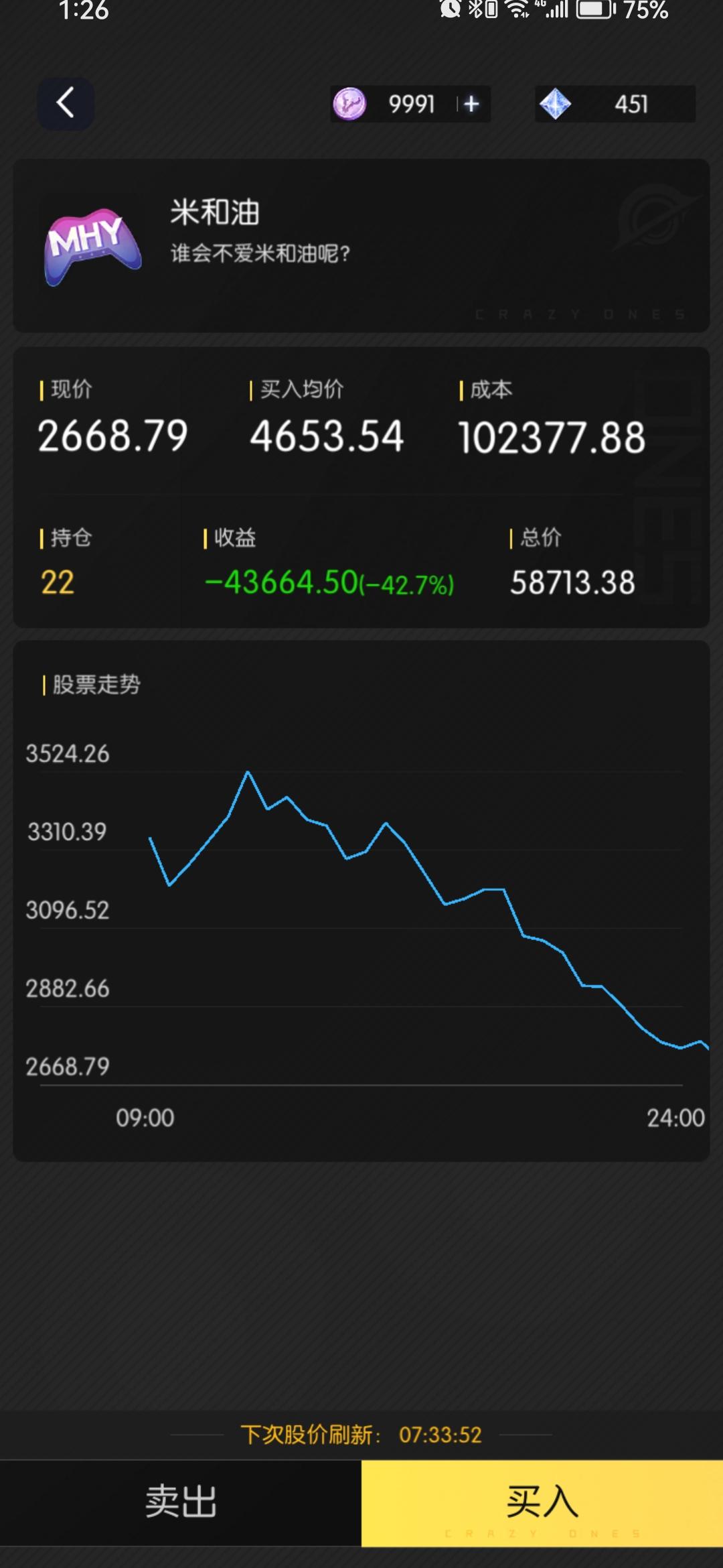 抄这破股,我等一个多星期了,只希望能回本啊!抽卡也是,非酋安慰奖拿了3次,抽张4星卡都是奢望,谁来救救我!