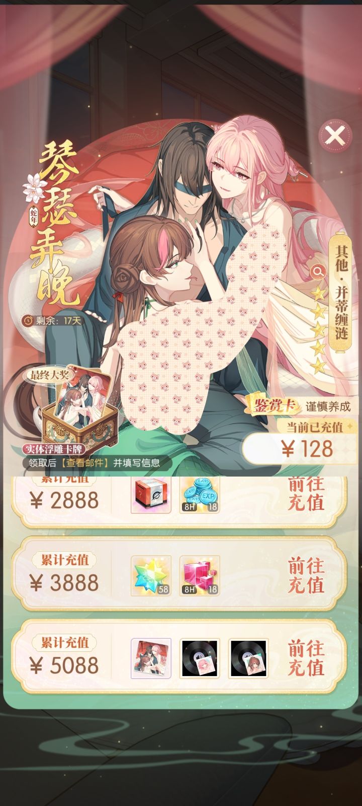 花这5k我不如去dl买几个同人音声+游戏,也比你这破实体卡+俩新年祝福好使吧,一想到氪佬们听到的还是小野cv换后的音声,就忍不住轻哼起来🤗充值解锁任务也从最初的168涨到233了,每次预告都不标明价格就是方便修改防止岁月史书。钱是要骗氪的,但新的活动内容是没有的,那么怎么让氪佬体会到爽感呢?只好再开一期全是托和人机脚本的擂台赛了,属于是幽默完了😋去年的龙年活动虽然小游戏有点坐牢但好歹有新东西,