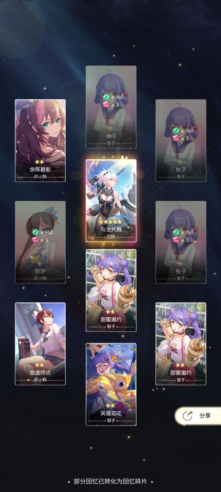 小野23号就抽到了,都打算今天晚上最后一个十连,要是还不中夏冰就不抽她了,结果中了