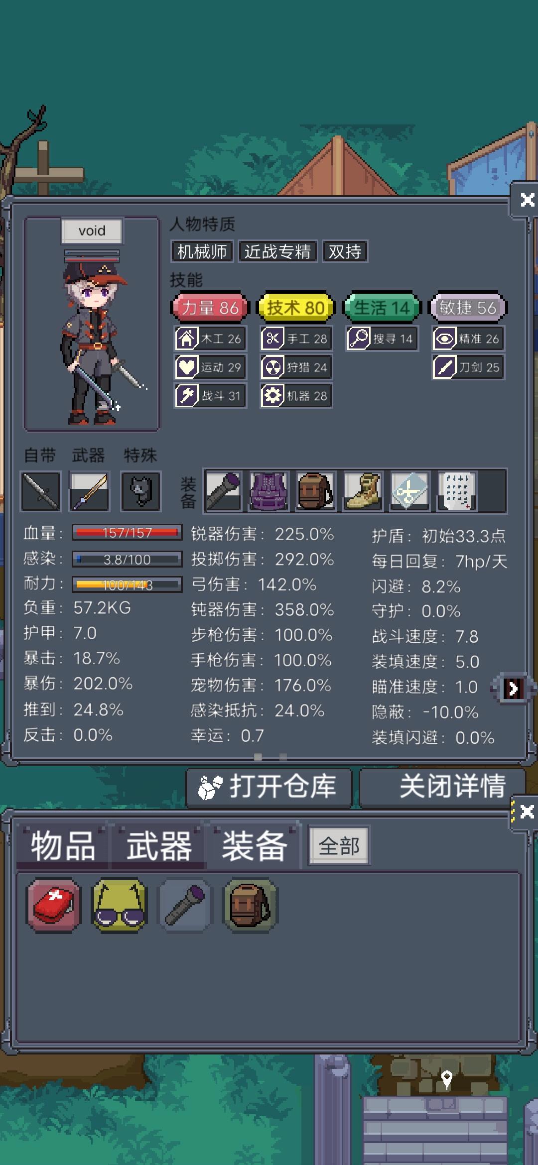 V哥:现版本V哥的钝器加成最高,因此选择钝器最佳,而钝器中锤子爆发最高,撬棍秒伤最高,这么看,应该是选撬棍最好,可运动等级高有个技能:冲锋(开局百分之五十概率触发,冲锋时近战攻击无冷却)运动满级后可以冲锋四次,这就导致玩起来感觉后期锤子比撬棍好用。所以,运气好就选锤子,运气不是很好就选撬棍吧😜