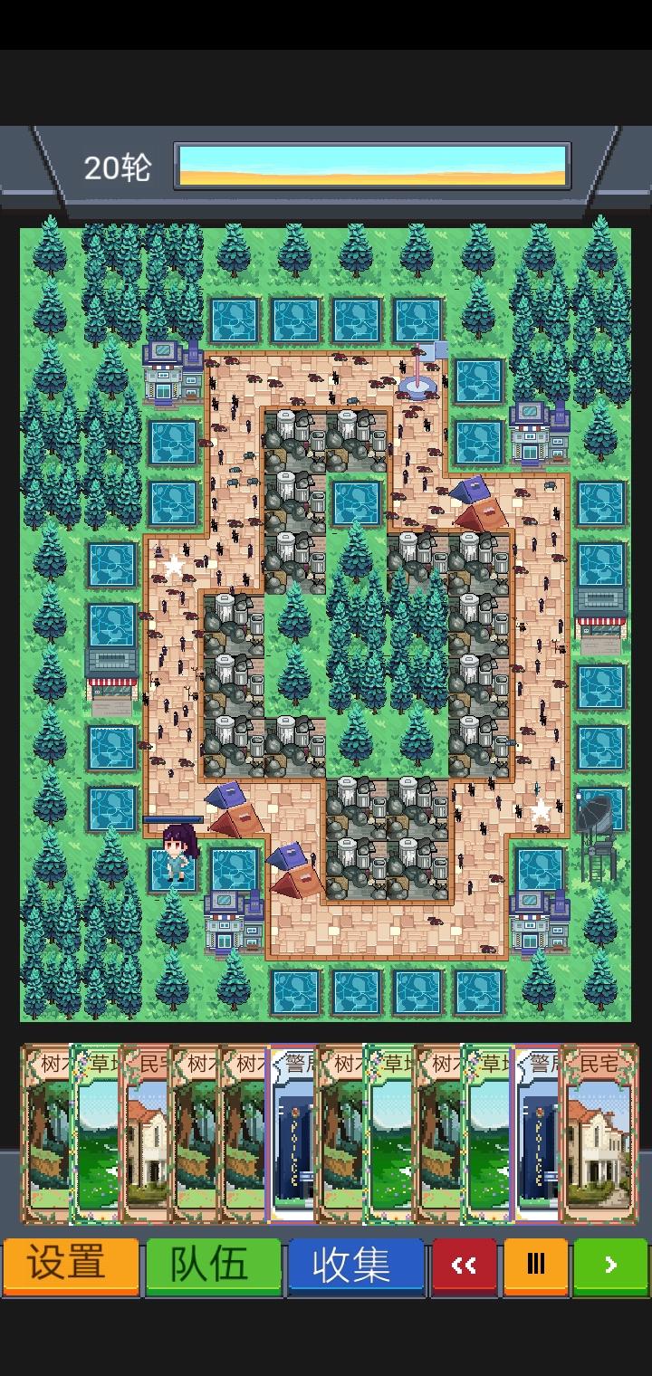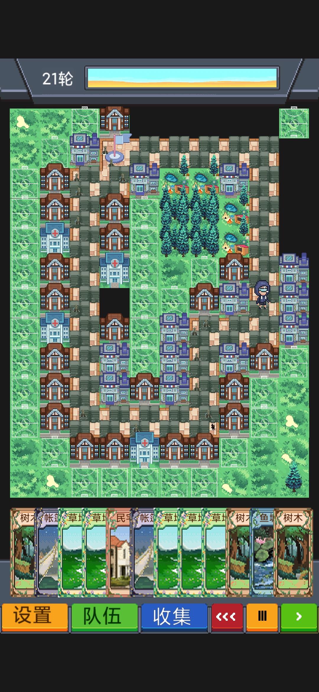 流派测评第四弹 这轮终于轮到我最喜欢的流派:资源装备流 牌组构建:帐篷、民居、森林 成型方法:先起一个2X2的森林,配合商店升级2~3个露营地出来保证食物供给(食物够的可以两个,想挑战极限3个是必须的)帐篷见到就尽量放拐角,民房放在帐篷旁边升级为商店,注意民房周围的路避免产生路灯卡帐篷位置(毕竟拆除很值钱)拐角商店探索两次。 整体地图难度随图块填充增强,难度取决于你是种树挑战极限还是草坪安心刷资源,但回报率也极高。食材装备武器书籍药品都有,属于万金油阵容 收益评测: 食物:A武器:A 书籍:A 防具:A 总评:适合新老刷属性资源+挑战极限,萌新注意不要硬拖和大量种树。 本人目前极限50轮,欢迎大佬冲击记录😎 如有其他创新流派,欢迎提出,我会在以后的评测中测试