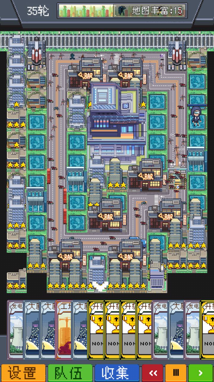 1.每往地图上放一个建筑或者草地啥的最上面进度条会推进一点,所以推进进度不是走了多少圈而是摆了多少东西。进度推进到50%会触发事件出现地下室,需要在四天内把地下室周围八个格子摆满建筑触发奖励或者加入同伴,所以快到50%了提前屯点卡片,尤其是屯一个警察局…进度到100会出一个武士boss掉一把很帅的剑…