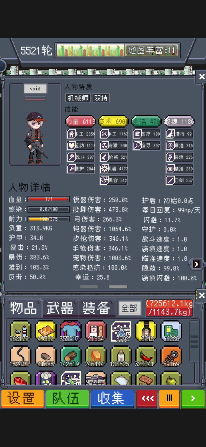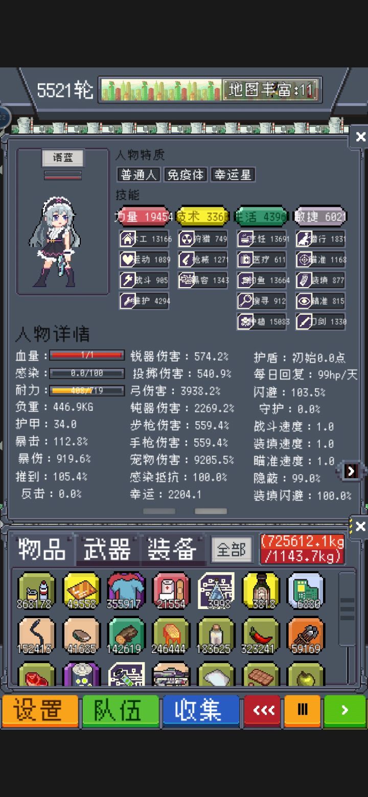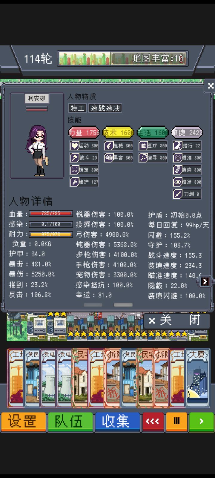 对比两张图进行说明这两张图,第一张是《预设难度》+《不肝不可能》且在建造14个基地的条件完成的。而第二张图为《真实难度》小技能万级+《不肝不可能》下的数值(注:由于0.1%的感染导致等级稍微下降)可以看到爆伤相差不大,但是攻击基础数值均为图一高。而且万级的柯安娜闪避值甚至没达百,这就说明有暴毙的风险。图二的优势在于宠物伤害,幸运值,攻速等。但是在满负重条件下攻速会被压低至1。所以基本绑定了不肝