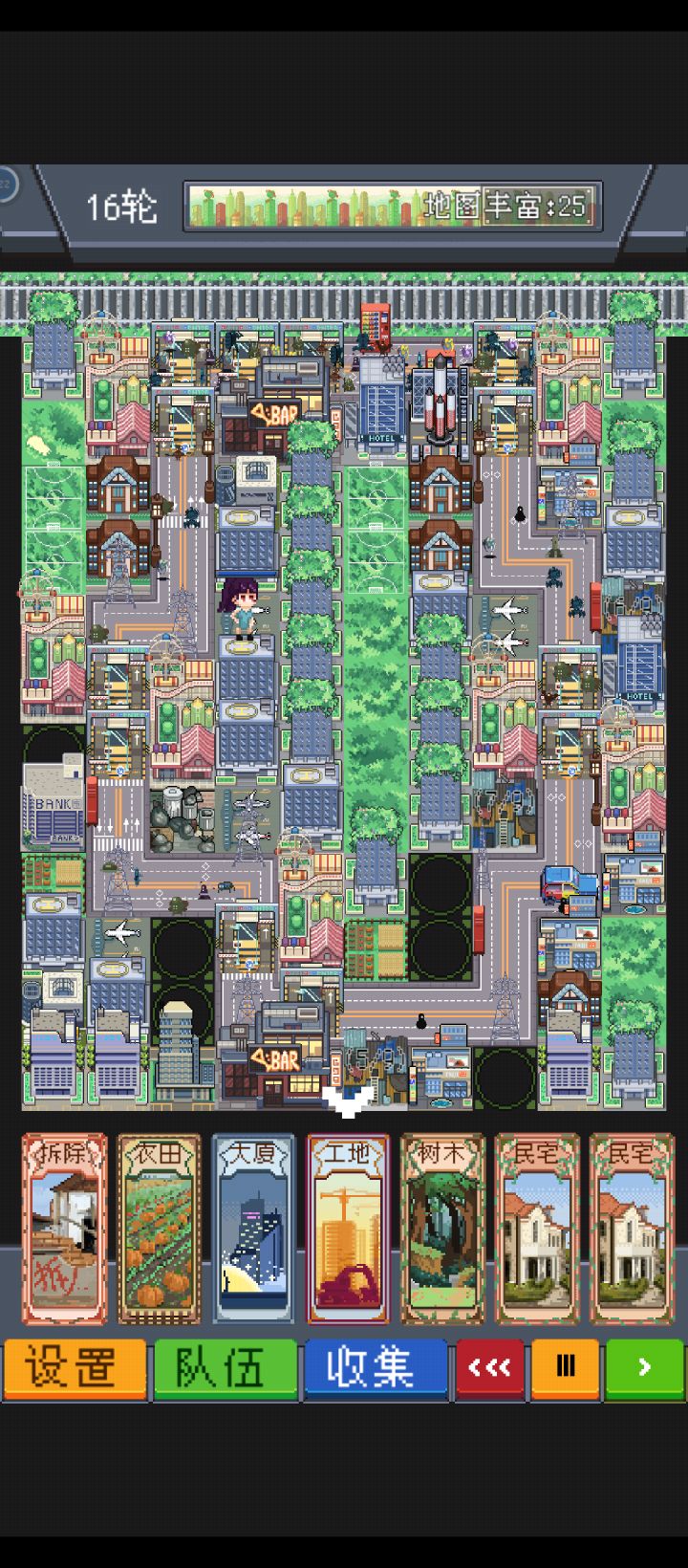 自己构思的一个build。目的是在不卡bug的情况下(IOS很难卡bug),尽量少打怪,加快搜索速度,可以挂机睡觉。实际使用体感极好,一觉醒来,材料上万。(当前版本:iOS, 0.3.0)【基础版】(只刷食材)图二带警局要求火车接触面(生怪点)越小越好。路面全放零售机。铁路边放警局,生成基地(注意先放零售机,再放基地,免得生成沙袋)其余什么都不放。开无敌+幸运,一觉醒来,食材上