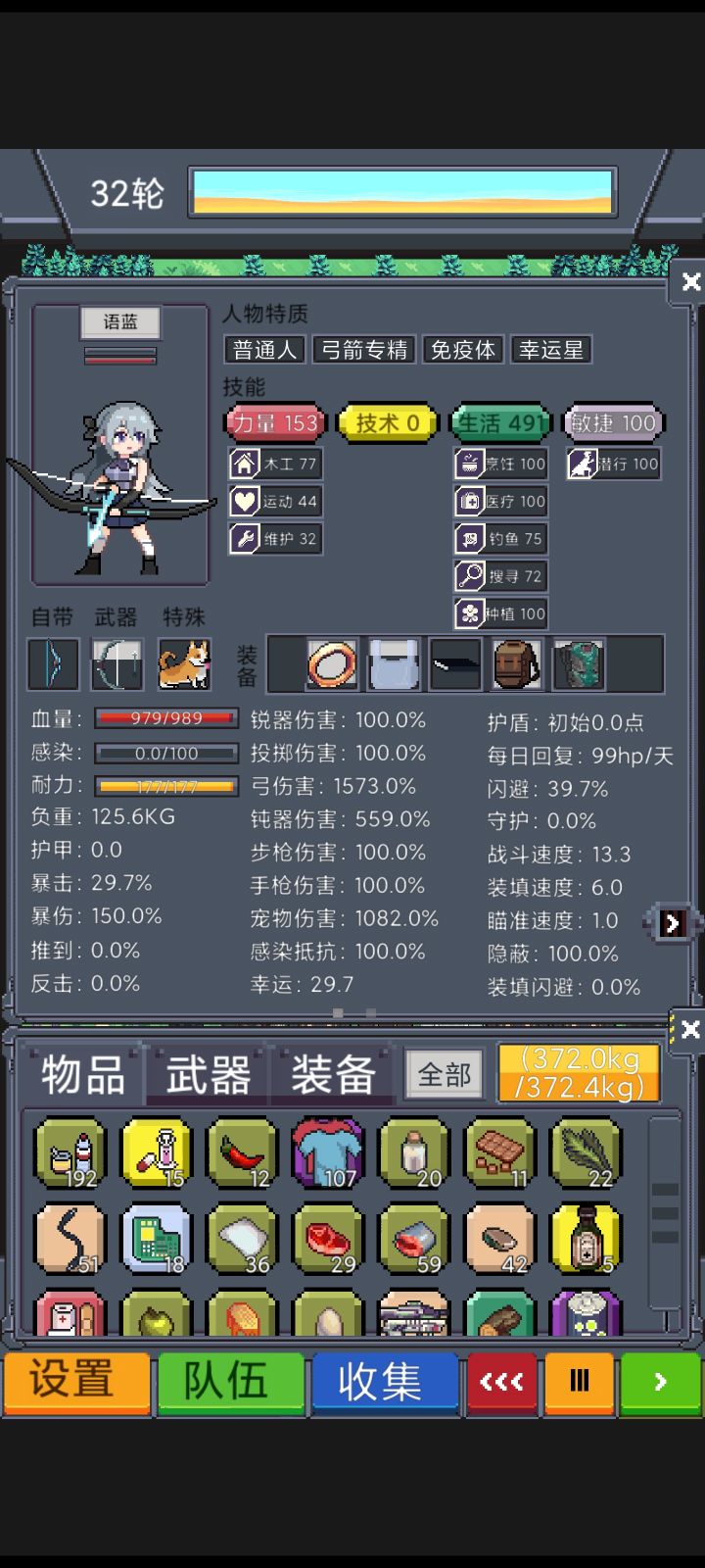 以后基本不用看图,没事看看人物状态,感染不高,有装备就行。