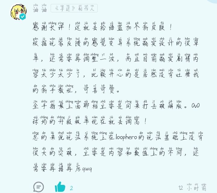 摸完,嘿嘿嘿,油油说要出语蓝新皮肤了,我大期待😼