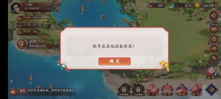 进去之后是别人的账号???再进去又换了一个账号,然后还显示账号已在别的设备登录???然后建设了房子,却不能移动,卡死在那里