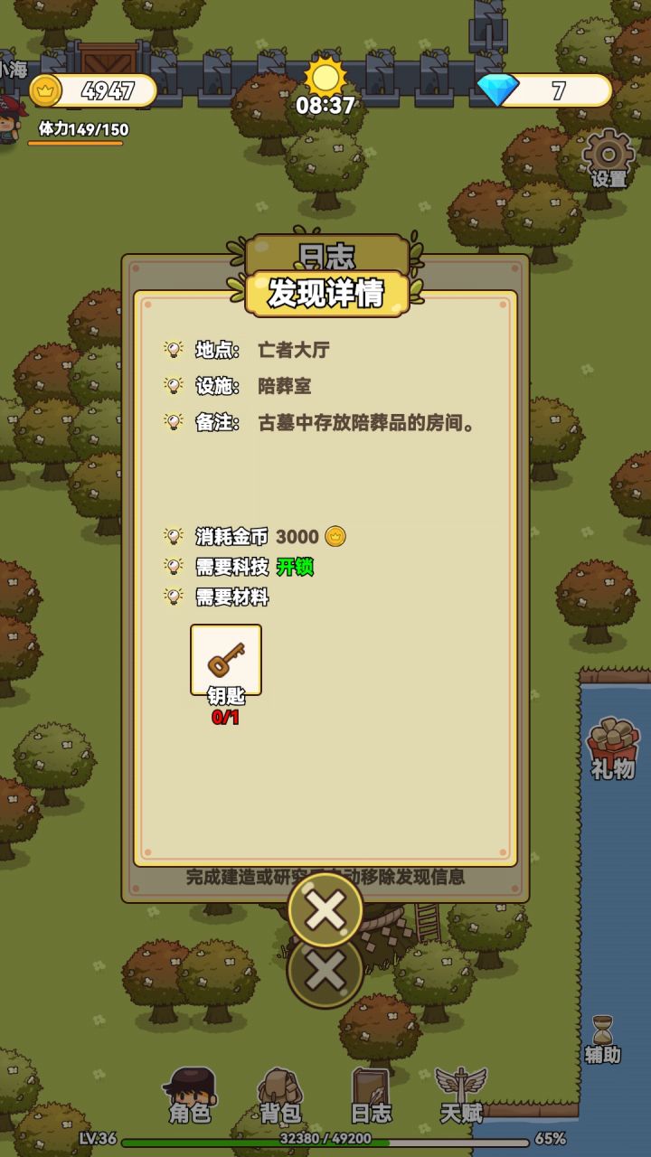 时隔四天,通关了,真的很不错呀,而且其实有很多小细节我都是后面才发现的: 1、装备修复其实不用一个个点开去修复,点一下角色里的小人就一键修复了。 2、那些药物在收集材料时,选择辅助采集是会自动给喂药了!!我前期一直没注意,每次怕浪费药都卡在90那个点位吃药,特心累,后期仔细看了下辅助采集的文字说明才发现的真相,看字太快的就容易像我一样漏看重要信息🙃。 3、如果不能用辅助采集的时候(就是只有怪的情况下是没办法用自动采集的),其实状态为0时,左上角会出现对应的药,直接点击就可以了!!这个也是我后期才发现的!!! 4、天赋那块:探险家优先升级整理、跑动、健身、巧力,这四个升完后,狂战士的第一层升级完其实就没有必要往下升了,因为带怪多绕一下就能打死了,升了帮助并没有特别大,加攻击还得看装备,工程师更为重要些,因为你可以少收集一倍的材料。 5、装备升级中的宝石那一块,红宝石以前的宝石,如果还没升宝石天赋其实没啥影响,但是红宝石后面真的特别需要,我红装升完起码用了150颗红宝石,就特别黑,如果没有升宝石天赋的话,红原石特别难打,因为在橙装的时候打隐世谷都需要绕着打,而且一次只能打五只,就需要刷新进去重复n遍。 6、免广告的那个都知道吧,支持一下刀叔,免广告简直不要太舒服😁。 7、建议每去一个图的时候,看到有个地点就去打卡一下,有宝箱的,尽量不要等下次再去开,最好是在当时就把怪绕死就开宝箱(其实部分图不杀怪也能开,小心的绕一下),这样可以避免后期因为各种各样的信物太多,不清楚去哪,以及在卡关的时候,看一下主线任务和翻一下日志底下每个建筑所需要的材料,对推进游戏进程可以起到很大的帮助。 以上就是我的总结和建议,希望各位友友们玩的开心😌😌😌。