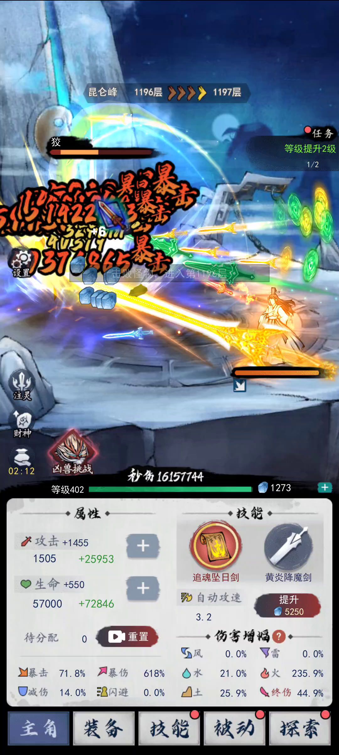 别的属性都没啥用,装备就拿那个带暴击和爆伤的,攻击的,被动的剑破虚空点满,后面两个点满,然后把下面的被动弄满,因为被动的技能buff是吃剑破虚空的概率的,最高0.05的速度,触发几率很高了。