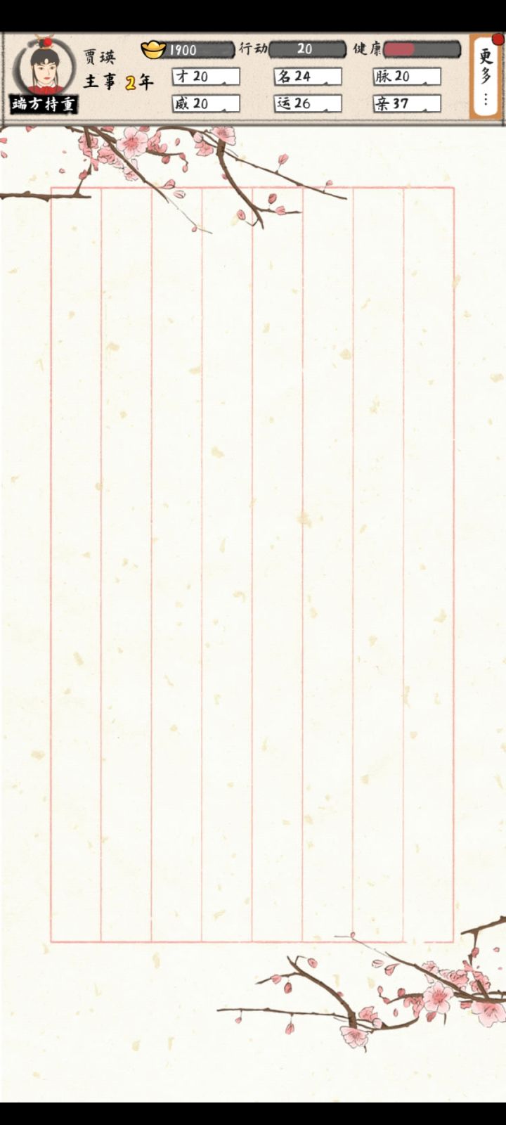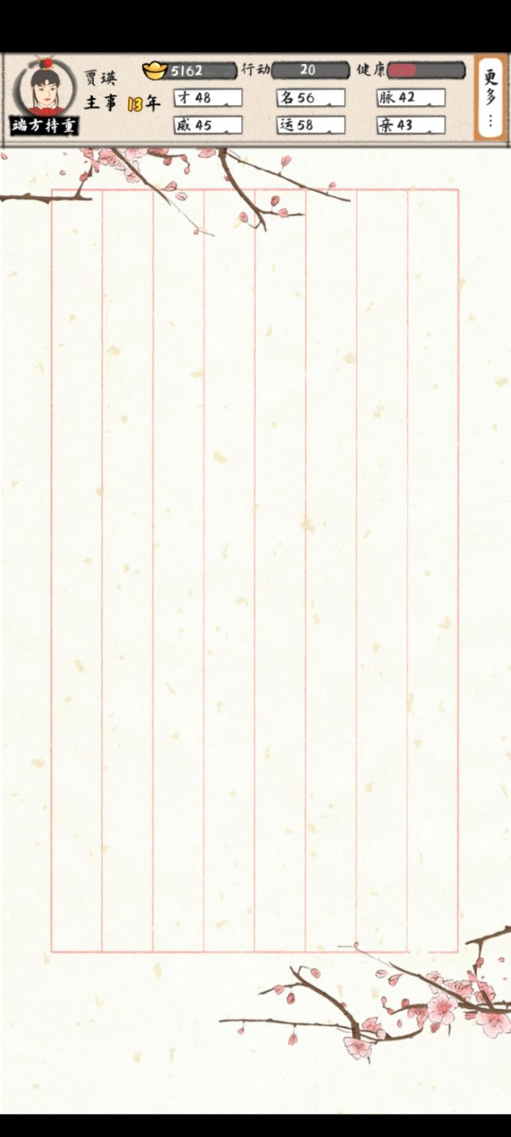 我又来了在世123年,身家上百万终于熬死了,要我说就是远离产业,就搞贸易香的一批还发现两个bug,一是前期有个罗氏我记得她是死掉了,但是救回来之后不在妻妾这里,然后这里显示5个妻妾可是东厢房西厢房都只有两个(空出来的是另一个水氏)。二是子女超过10个再多就没办法显示了