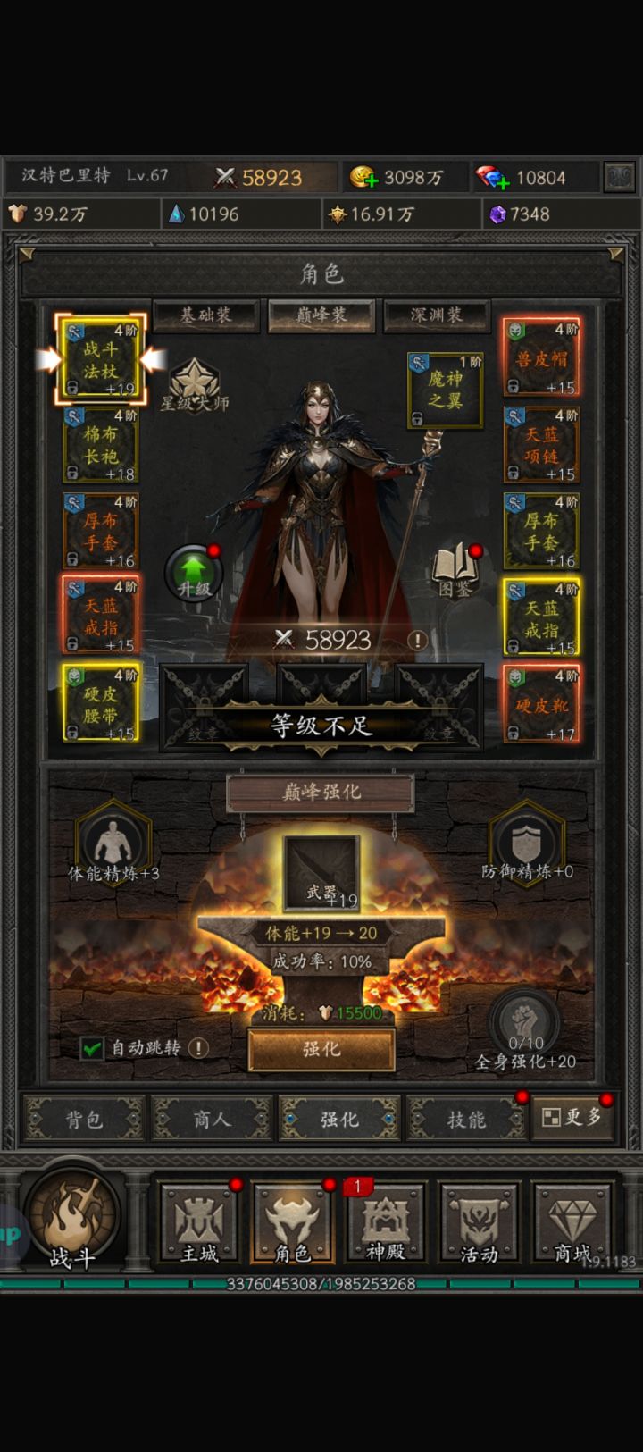 装备等级4阶,人物等级巅峰等级都60+。怎么19就不让升了
