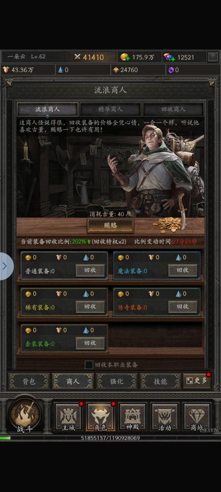 为什么装备回收不了?装备快满了,流浪商人显示0