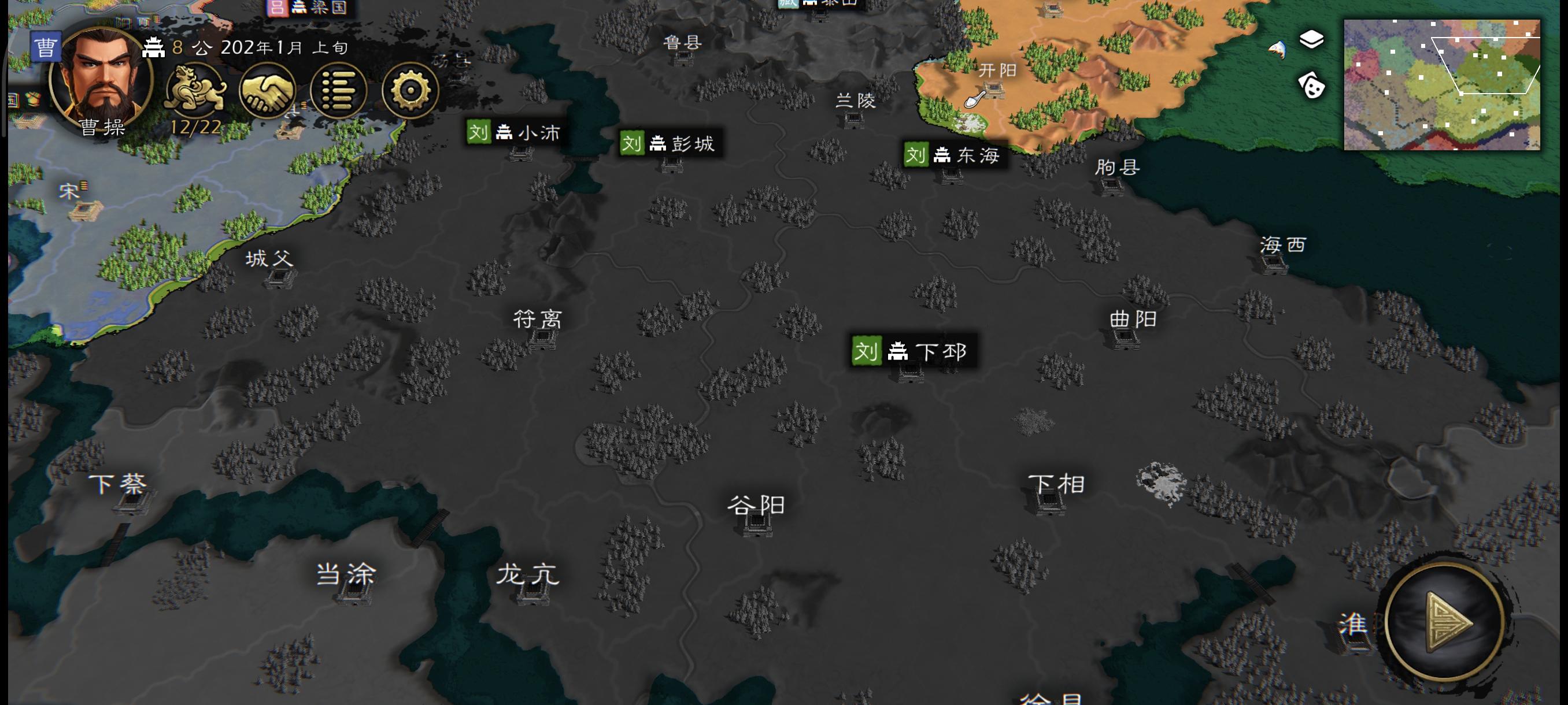 剧情:曹操将汉献帝迎回许都,并将西都洛阳平定并对河内地区占领南边地界,准备向西边平定徐州时。吕布与张邈等发动兖州叛乱导致曹操。与吕布交战。刘备此时接受三让徐州,成为徐州刺史。北边袁绍与公孙瓒发生界桥战争,并对青州进行抢夺。与此同时,袁术称帝。导致曹操、刘备,刘表,孙策共同进攻。改动:加强了。孙策多添加了几个郡。避免实力太小,平定不了南边三诸侯。加强了马腾的实力。避免曹操发展过快。加强的是袁绍的私