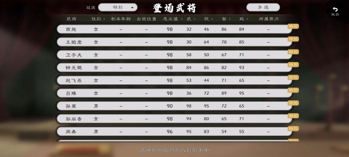 这个文章是弥补没有人做这方面的攻略,此文章包含了目前 三国 DLC 所有的武将的,四维,武将特性,技能,唯一神器,以及自带兵种的攻略#【顺便提一嘴,我希望帮助很多的人,攻略做法极其粗糙,希望有大佬可以整理发布,感谢(^🙏^)】 除了极个别的武将可以玩玩,神典韦(很强)神吕布(很强)神公孙(很强)妇好(很强精锐枪兵)钟无艳(很强重骑),虞姬(极大幅增加投石车),昭君(奶妈),芈八子(太守),吕雉(