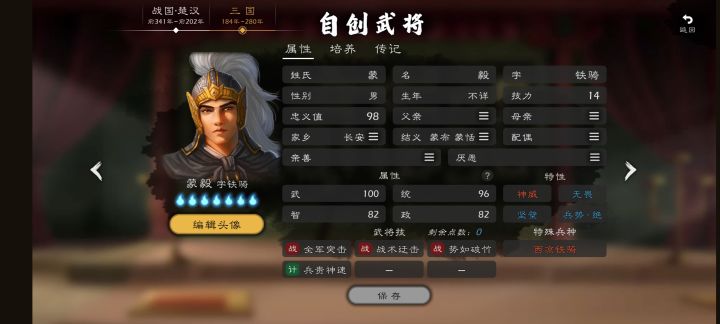 三个自建都具备极强单挑,不易被俘,高昂士气。喜欢的直接拿去用。1.枪兵大幅强化,重骑大幅强化,碰到骑兵出枪兵打,碰到步兵出骑兵打,攻城用鲜卑。前中后期全能搭子,破局必备。2.一回合4动骑兵外带抓将天赋。3.跟在队伍后面输出就好,话说这个神射伤害是真的高,极大幅强化骑射,谁用谁知道。 有更好的或者哪里可以改进,欢迎留言分享。