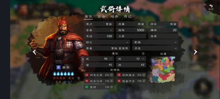 通关攻略武将:核心输出位:曹操,典韦,许褚,其他(刘晔,吕蒙带霹雳车,文丑或庞德带陷阵营或飞熊军)辅助:郭嘉,陈宫,满宠,徐晃,赵俨,夏侯霸(周瑜,袁涣,诸葛亮等)等加有计策(兵无常势)的武将,以及有用解控的武将,输出法师(锦上添花):诸葛亮,陆逊,于吉,左慈,贾诩,司马懿培养:曹操霹雳车(把培养的溅射和加统兵数的点出来),典韦许褚占位抗伤害(把反击点出来,培养16点有限,不用点扎营,优先点