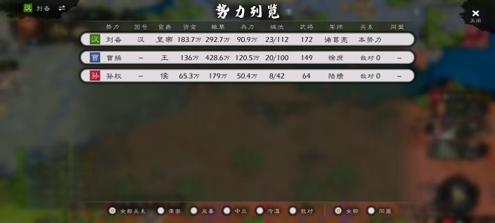 定益州,西凉马超投降。结盟孙权一直解盟,只能一直停战,还是推不动曹操,要不要停战曹操,推孙权???