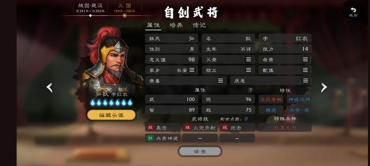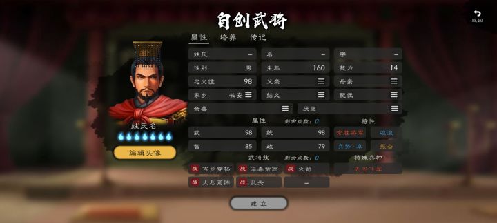 尝试了几种搭配总结出来几个误区:第一,红色特性“治军有方”纯纯华而不实,带一万兵和以上时所有伤害大幅减少,就是一个遥远的梦。一万兵的最低门槛起码都是到候爵的“四镇将军”加节丈才刚好一万,而且被人摸一下buff就没了,纯后期特性。(我不确定带兵一万以后这个特性是不是常驻,就是被打到一万以下也生效?知道的欢迎不吝赐教)。 其实戚家军特性“藤甲”和“盾”加“荡寇统帅”就有50%近战减伤和80%远程