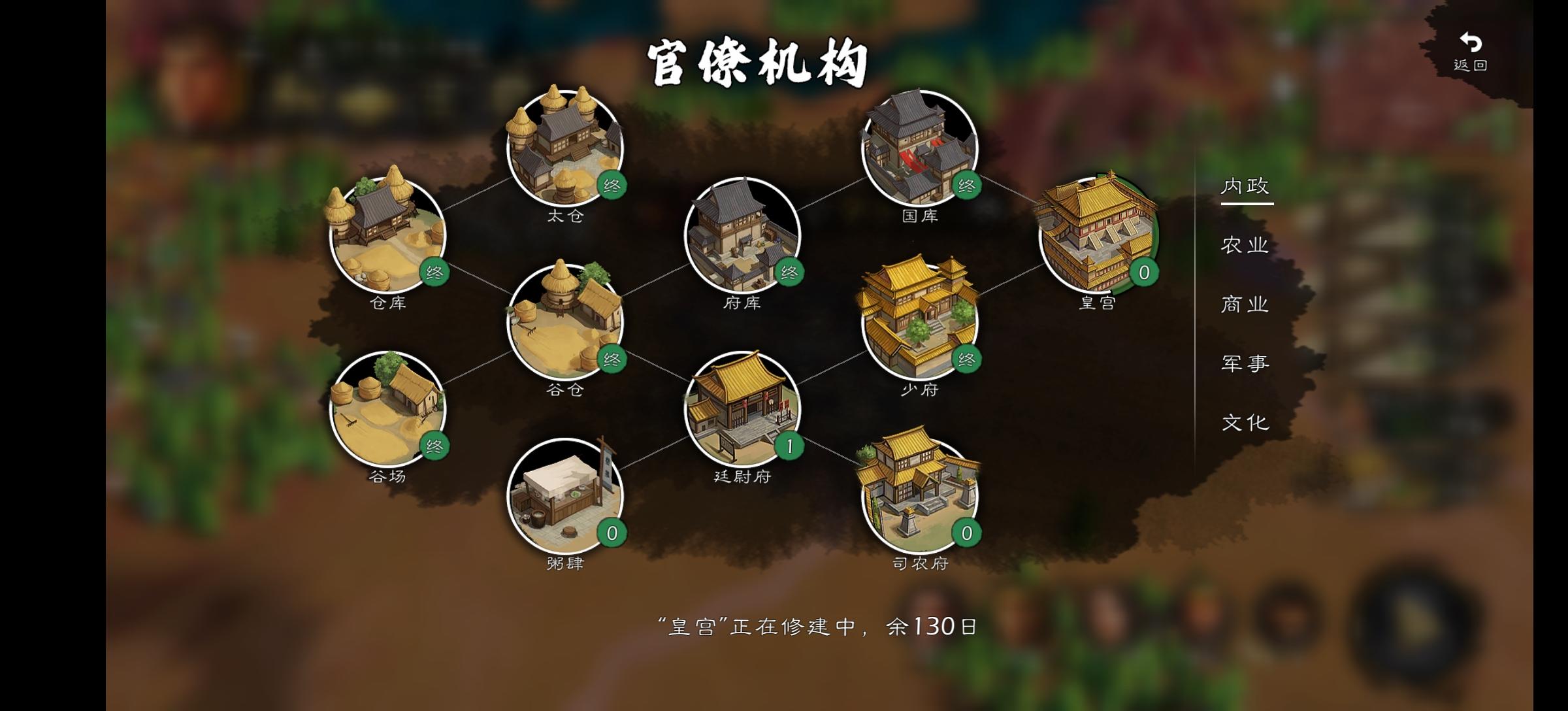 1,建议把都江堰改名为驰道,毕竟都江堰是水利灌溉设施,放到农业里面还合适一点,正好农业也没有顶级的设施,增加境内运动距离的还是叫驰道吧。2,皇宫的作用仅仅只能用来称帝太单一了,毕竟没皇宫也能强制称帝,应该加一个每旬加势力武将1点忠诚或加所属城池治安10点或增加登庸游说成功率,策划自己看着办。3,将计谋分割为外交计谋和情报计谋两类,刺杀,流言,策反,离间划进情报计谋。外交计谋增加交易(钱粮交易,