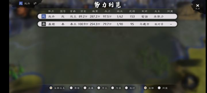 本来还有8个势力,现在就显示2个,地图也成这样了。