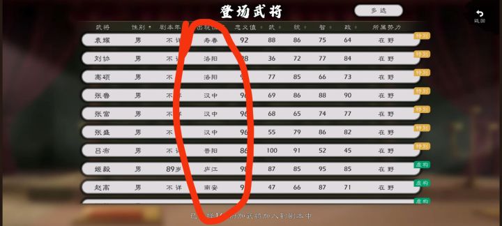 1.登录武将时,“出现地区”处增加一个筛选(排序),就像“性别”一样,这样更方便武将安排。2.将登录武将增加到势力时,势力的武将数量显示没有变化,修改一下。3.登录武将可以选择出现在哪个城市(可选择在职或者在野),而不是只能分配到势力。