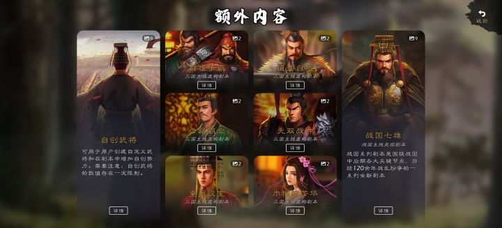这个登佣提个建议,这个探索不要单独一个城探索,可以学隔壁汉末,地图分区域探索以一个州探索,可以增加情报功能,丰富内政玩法,情报以自己所在州慢慢向临近州侦查和探索,就可以登佣其他州在野武将,毕竟这种策略模拟游戏有情报系统才更加完美点,还有武将不要只在一个城里,可以让他们在一个州区域内随机出现,不然每次都是选那几个城和武将,随机出现就可以增加不确定性,可以更丰富玩法,还有单挑玩法也要丰富一下,现在的单