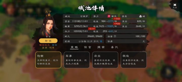 挺喜欢这个游戏的,知道工作组手头工作多,但还是希望能优先优化下本体功能,毕竟这是核心根本。1.通关剧本成就,记录通关时长,次数等等信息,提高游戏耐玩度2.军团系统,后期真的太需要了3.智力能否影响被策略攻击时的防御