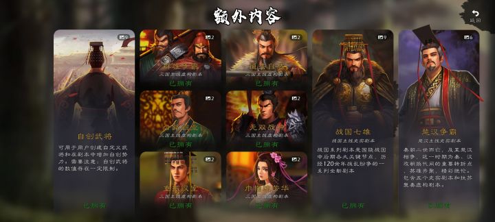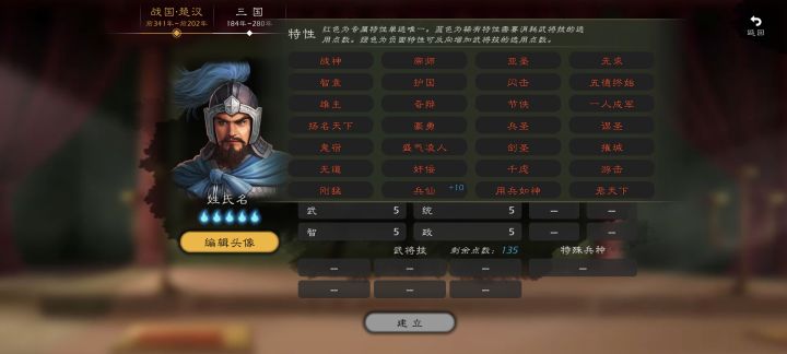 老帝 能不能把战国楚汉三国的自建武将连到一块去包括特性技能啥的全都能合并到一块,不然建的有点麻烦,战国的建了三国还得建,还有就是有的一些特性这自建里面根本没有,能不能把买了dlc里面武将的特性全放出来给我们玩呀,还有就是武将特性位置多一个,剧本里最多都有6个特性而且还有两个红色,而买了自建的我们却只能弄4个特性也不能弄两红
