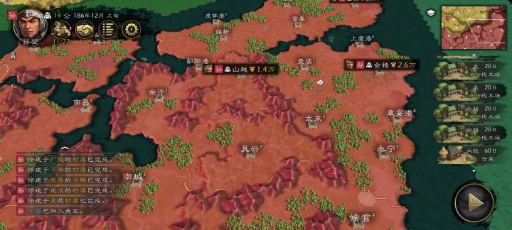 给官方的建议很小的改动就可以很大的增加游戏性:农田伐木场等经济建筑可以被敌方占领,掠夺,毁坏等操作城池增加类似于繁荣度的数值,会动态变化,比如根据这个范围内是否发生了战斗,治安如何,修了多少建筑,等因素随时间加减;会对征兵产粮,产资金,等等产出造成影响;被敌方围城或者攻击这种发生战斗或者反复占领会额外去掉;每个大城小城初始繁荣度不同这个根据剧本所对应的具体时间来确定,这样也能很好的解决类