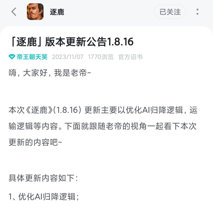 归降功能过于随机,而且几率过高,两个势力之间都没有发生战事,甚至其中一个势力还在和别人打仗,突然就归降了,严重影响游戏体验!建议小势力被大势力打得快守不住了才有几率触发归降,而且几率不能太高,不然就没意思了!或者小势力打不过的时候有几率归降接壤的第三方势力,联合对抗大势力,感觉会很有意思!