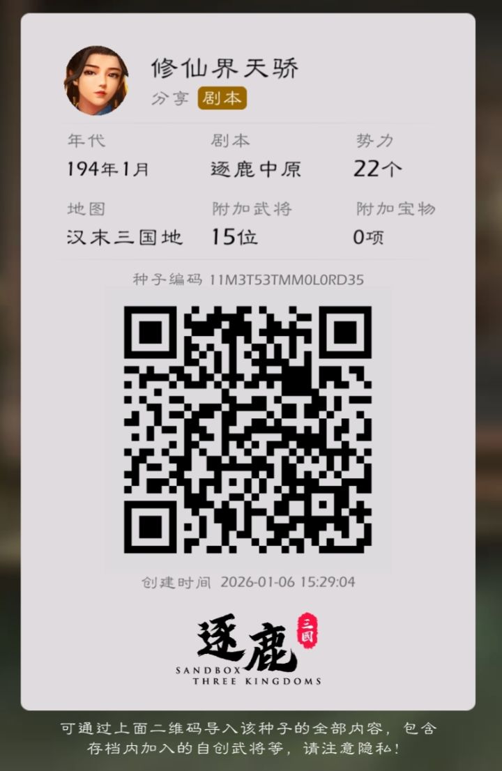 (不是说一周小更,一月大更吗?都过一周了,小更呢?论坛里那么多建议,随便选两个用用都行,实在不行,换换建模立绘都ok。以前还时不时听取意见,现在演都不演了,要么踢皮球,要么潜水。)(个人抱怨与内容无关)剧本整不好,完全可以放开限制,毕竟官方你自己都说过玩家自制剧本都可以,但却死活卡着存档与时代限制。要我说要不学学人家三国时代,虽然是个小游戏,但人家完全放开剧本权限,许多玩家的自制剧本都直接加入游