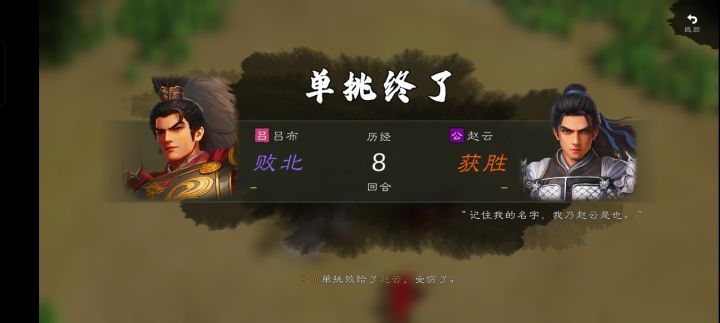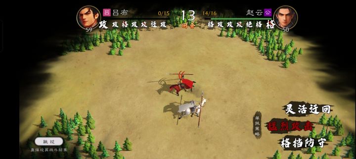 吕布:全天赋满,士气91,单挑值59,气血值15赵云:单挑天赋满,士气86,单挑值50,气血值16结果:吕布赢多输少,不愧官方认证的“单挑第一”,但有时候会被“云大怒”一击秒杀。