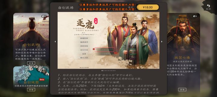 1.建议逐鹿加入剧情模式比如18路诸侯打董卓,自建君主可以选择是否加入,出个功勋系统,谁的战功高,可以获得相应的官职和奖励。2.电脑一方董卓,灭了任何一方诸侯,应该开启之前全图登庸。大家都可以招募其他势力的武将,比如刘备被灭,关羽张飞可以自主选择其他阵营。3.建议dlc地图增加点野生城池的郡守,多一点官方建的野将,或者一些历史人物在特殊剧情里可以在旗下效力,我们通过击败他们可以获取资源同时可