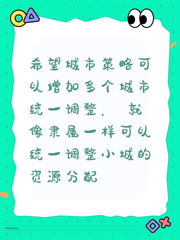 希望城市策略可以增加多个城市统一调整, 就像隶属一样可以统一调整小城的资源分配