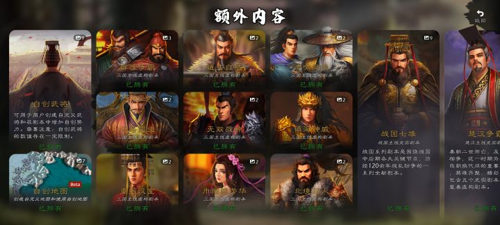 1.新玩家入坑整广告这一出恶心人干嘛?想萌新变多为什么不做个迷你关?提供教学和试玩?萌新不玩逐鹿最大的问题不是一进游戏选完剧本势力,啥也没有看着自己城池无从下手?2.dlc的价格,原本的价格都已经算很勉强值价了,如今涨价,真是自信哈?3.dlc的售后,买断制dlc为什么不在taptap上发售?是为了防退款吗?还有别搞什么半成品dlc,都没做完你卖什么?4.游戏本体的游戏性,没