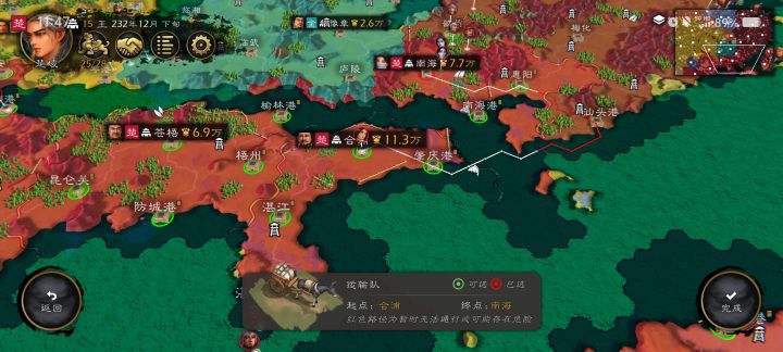 很的烦一件事,运输会往敌对势力路过,我的24000兵,40000钱,100000粮被打死了,然后呢用途径设置好了以后执行不了,执行力还充足的很,还有就是停战后为什用不了其他计谋到停战方,还有单挑差10点数值都能输,#逐鹿 太难了我,后期更是,废手废脑,出动10万大军,将领多的我点不过来,现在我不是打不过,是打不动累了。