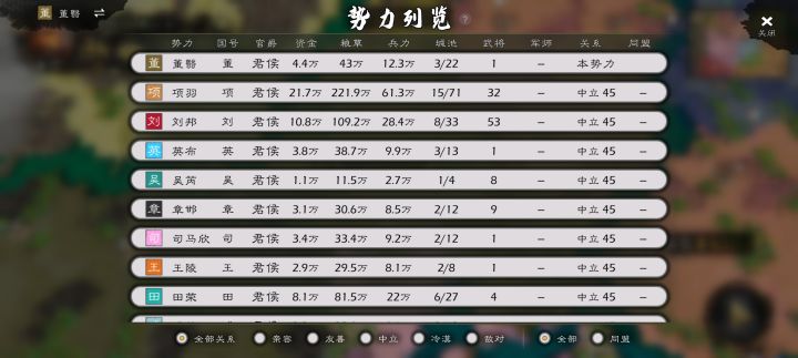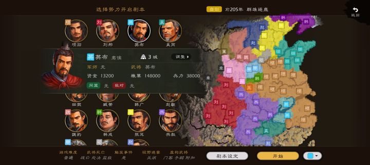选势力显示的城池数据出现错误,与地图不一致,进入游戏后也是,显示你有三座城池,实际上你就一座